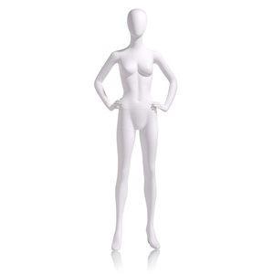 Female pose 3 with RF1 Head, Arms B, Leg 3, Molded shoe with wedge heel, foot fitting only and glass base. Head is attached, not removable. Oval Head and True White finish.